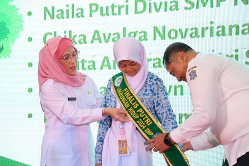 Surabaya, (DOC) – Sebanyak 84 finalis Pangeran dan Putri Lingkungan Hidup (PangPut) 2024 jenjang SD dan SMP menerima selempang kehormatan. Penjabat Sementara (PJs) Wali Kota Surabaya, Restu Novi Widiani, langsung menyematkan selempang itu di Graha Sawunggaling pada Rabu (9/10/2024).