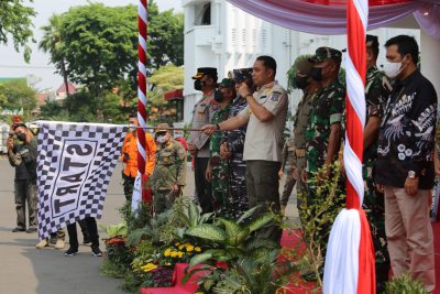Saat di Pendopo Arya Wiraraja, apel penyerahan api obor yang di ambil dari kawah Ijen di gelar, untuk di serahkan ke Bupati Lumajang Thoriqul Haq.
