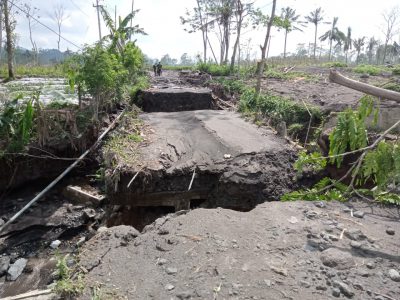 Lumajang, (DOC) – Jembatan penghubung antar desa di dua Kecamatan Candipuro dan Pronojiwo terputus akibat banjir lahar dingin Gunung Semeru.
