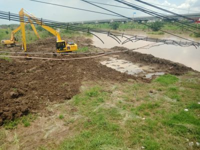 “Jadi, dua alat berat itu kami turunkan ke sungai Kali Lamong, karena memang pada saat itu endapannya sudah mengeras. Kami keruk endapan itu dan kami bikinkan tanggul di pinggirnya,” ungkap Erna.