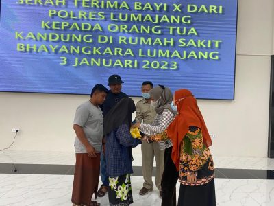 Pasca kejadian itu, Polres Lumajang menyerahkan bayi tersebut kepada orang tuanya di rumah sakit Bhayangkara Lumajang, Rabu (4/1/2023).