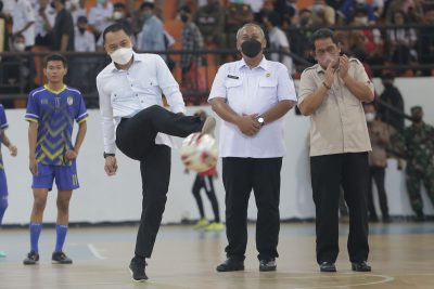 Surabaya,(DOC) – Memperingati Hari Jadi Kota Surabaya (HJKS) ke-729, Dinas Kebudayaan, Kepemudaan dan Olah Raga serta Pariwisata (Disbudporapar) menggelar Kejuaraan Futsal memperebutkan Piala Wali Kota di GOR Indoor Gelora Bung Tomo, Rabu (11/5/2022).