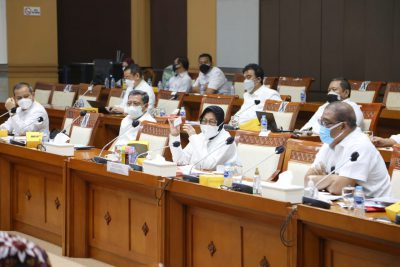 foto: Mensos Risma bersama jajarannya Rakor dengan Komisi VIII di DPR RI