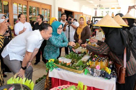 Wali Kota Surabaya Eri Cahyadi yang hadir bersama Ketua Tim Penggerak (TP) PKK Rini Indriyani, membuka gelaran festival di Alun-alun Balai Kota Surabaya, Selasa (30/5/2023). Festival Urban Farming ini diikuti sebanyak 135 kelompok tani yang tersebar di 31 kecamatan Surabaya.