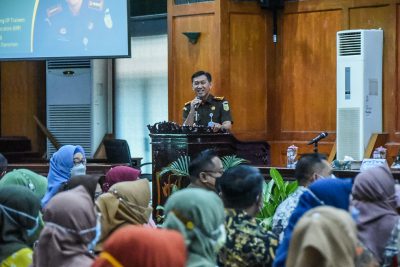 Surabaya,(DOC) – Kepala Kejaksaan Negeri (Kejari) Surabaya, Danang Suryo Wibowo memberikan pengarahan kepada pejabat Pemerintah Kota (Pemkot) di Graha Sawunggaling, Kamis (16/6/2022).
