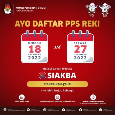 Petugas PPS yang di butuhkan, masing-masing 3(tiga) orang di setiap kelurahan se-kota Surabaya.
