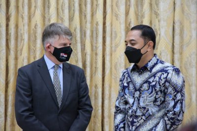 Surabaya, (DOC) – Wali Kota Surabaya Eri Cahyadi menyambut kedatangan Duta Besar (Dubes) Inggris untuk Indonesia dan Timor-Leste, Owen Jenkins di Ruang Kerja Wali Kota Surabaya, Kamis (2/12/2021). Kedatangan Dubes Inggris tersebut untuk mempererat hubungan kerjasama Kota Surabaya dan Liverpool, serta melakukan pembahasan mengenai pengembangan program Sister City.