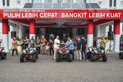 Surabaya, (DOC) – Pemerintah Kota (Pemkot) Surabaya menerima bantuan 5 unit ATV dari PT HM Sampoerna Tbk di halaman Balai Kota Surabaya, Jumat (30/12/2022). Bantuan atau CSR itu diserahkan langsung oleh Kepala Hubungan Regional dan Berkelanjutan PT HM Sampoerna Tbk Kukuh Dwi Kristianto dan diterima langsung oleh Wali Kota Surabaya Eri Cahyadi. Bahkan, saat itu Wali Kota Eri langsung mencoba ATV itu di halaman Balai Kota Surabaya.