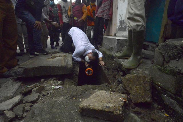 Bahkan, saat itu Wali Kota Eri Cahyadi langsung melihat sendiri kondisi di bawah saluran. Dengan berbekal senter besar, ia beberapa kali jongkok hingga dlosor demi melihat kondisi di bawah saluran.