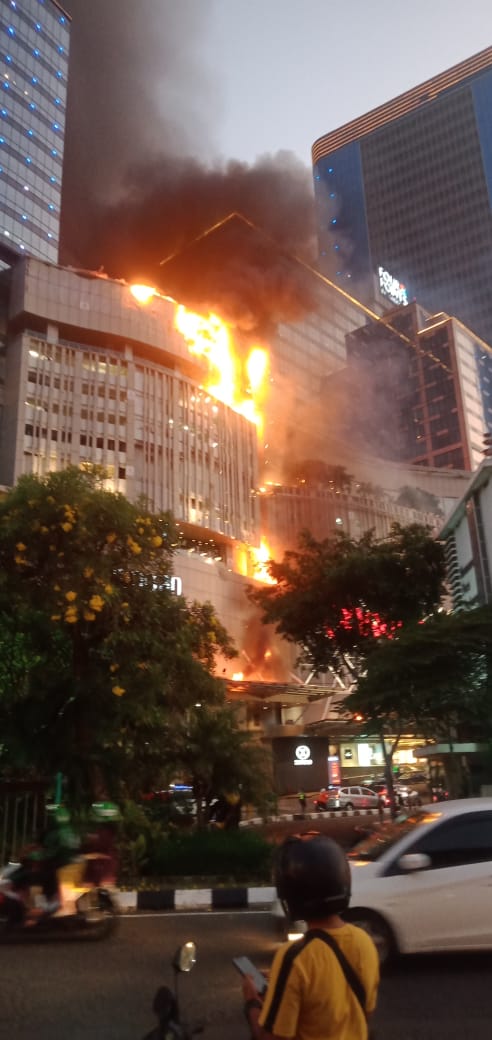 Pusat perbelanjaan terbesar di Surabaya tersebut terbakar di bagian atas, tepatnya lantai atas TP 5.