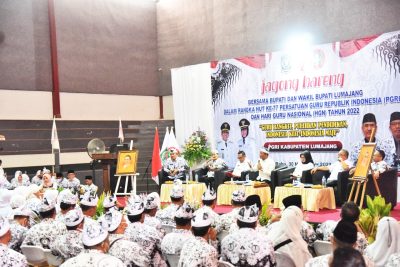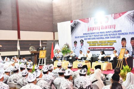 Lumajang,(DOC) – Peringatan HUT PGRI ke-77 sekaligus Hari Guru Nasional di Kabupaten Lumajang diperingati sejumlah kegiatan, salah satunya Jagong Bareng bersama Bupati dan Wakil Bupati Lumajang. Jagong Bareng diselenggarakan di GOR Wira Bhakti Lumajang, Rabu(30/11/2022).