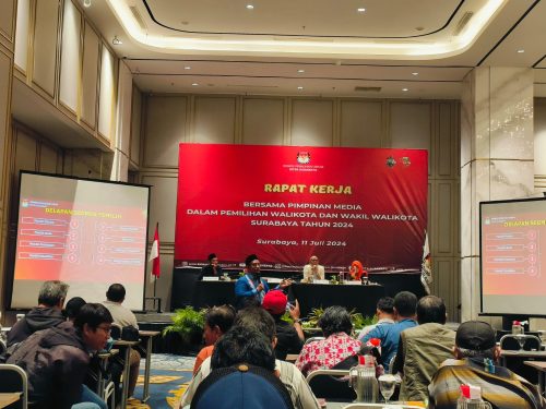 Informasi ini di sampaikan oleh Komisioner KPU Kota Surabaya Divisi Sosialisasi Pendidikan Pemilih, Partisipasi Masyarakat, dan SDM, Subairi, dalam rapat kerja bersama media di Hotel Movenpick City pada Kamis, (11/7/2024).