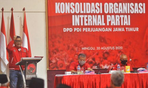 Surabaya,(DOC) – Jajaran DPP PDI Perjuangan menggelar Konsolidasi Organisasi Internal Partai di kantor DPD PDIP Jatim, Minggu (30/8/2020), untuk menyambut Pilkada serentak 9 Desember mendatang.