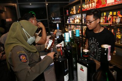 Pertama-tama, petugas mendatangi sebuah ruko di Jl Darmo Indah Timur, Kecamatan Tandes, Kota Surabaya. Pengecekan izin mihol yang diperdagangkan dilakukan di lokasi tersebut, bersamaan dengan pemeriksaan Izin Mendirikan Bangunan (IMB) dan usia karyawan.