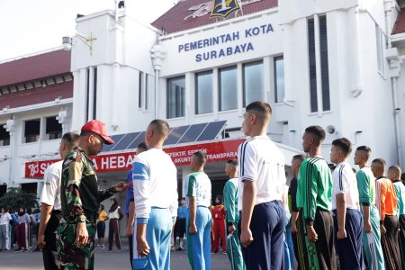 Surabaya, (DOC) – Kepala Badan Kesatuan Bangsa dan Politik (Bakesbangpol) Kota Surabaya mulai menggelar pra pelatihan paskibraka Kota Surabaya tahun 2023 di halaman Balai Kota Surabaya, Jumat (21/7/2023). Dalam pra pelatihan ini 100 pelajar SMA dan SMK yang sudah lolos seleksi hadir dalam kegiatan tersebut.