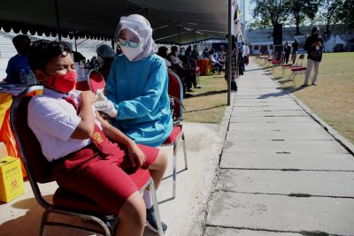 Surabaya, (DOC) – Vaksinasi massal yang digelar Pemerintah Kota (Surabaya) khusus pelajar SD-SMP usia 12 tahun ke atas di Gelora 10 November (G10N), Kecamatan Tambaksari, Surabaya, Minggu (11/7/2021). Karena sudah dikoordinir dan diundang oleh Dinas Pendidikan (Dispendik) Surabaya, vaksinasi massal khusus pelajar ini nyaris tanpa antri lama.