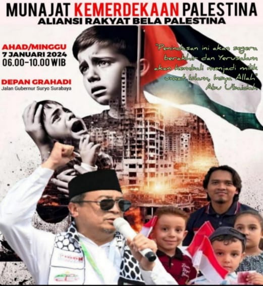Acara ini bakal digelar pada Hari Ahad, 7 Januari 2024, pukul 06.00 WIB di depan Gedung Negara Grahadi Surabaya. Ketua Panitia, Dino Imansyah, menghimbau muslimin dan muslimat Surabaya dan sekitarnya hadir dengan membawa bendera merah putih dan Palestina.