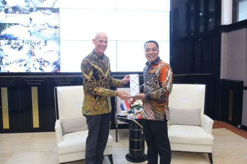Surabaya,(DOC) – Wali Kota Eri Cahyadi menerima kunjungan Wakil Duta Besar Inggris untuk Indonesia Rob Fenn, sekaligus bersama-sama membuka kegiatan Webinar bagi Guru Sekolah Inklusi di Kota Surabaya dengan St. Vincent’s School Liverpool, di Lobi lantai 2 Balai Kota Surabaya, Selasa(28/6/2022).Dalam sambutannya, ia menyampaikan terima kasih kepada segenap jajaran Kedutaan Besar Inggris untuk Indonesia dan seluruh jajaran St. Vincent’s School Liverpool, atas kerjasama Sister City antara Pemerintah Kota (Pemkot) Surabaya dengan Kota Liverpool dalam bidang peningkatan sumber daya manusia.