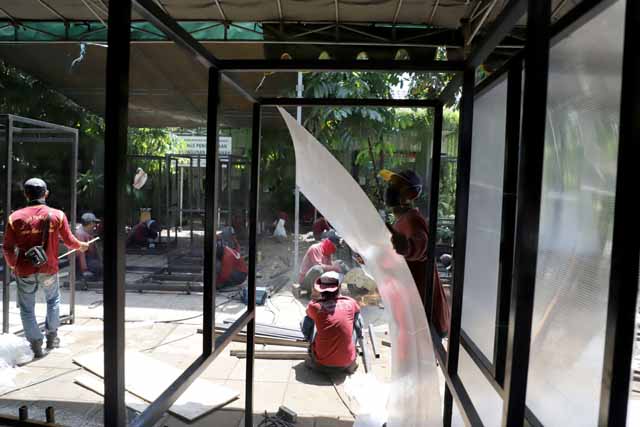 Sementara itu, di belakang Balai Kota Surabaya, Satgas Dinas Perumahan Rakyat dan Kawasan Permukiman, Cipta Karya dan Tata Ruang (DPRKP CKTR) sedang sibuk membuat bilik sterilisasi. Mereka kerja cepat seakan dikerja waktu. Sehari, mereka bisa membuat bilik sterilisasi ini 10-20 unit. Hingga tanggal 31 Maret 2020, Satgas ini sudah membuat 294 bilik sterilisasi.