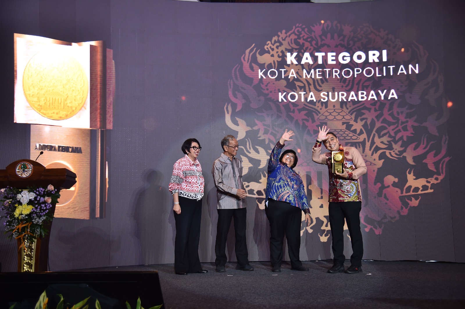 Surabaya, (DOC) – Wali Kota Surabaya Eri Cahyadi menerima penghargaan Adipura Kencana 2022 kategori Kota Metropolitan dari Kementerian Lingkungan Hidup dan Kehutanan (KLHK) RI di Auditorium Dr. Soedjarwo, Gedung Manggala Wanabakti, Kantor Kementerian LHK, Jakarta, Selasa (28/2/2023). Penghargaan Adipura Kencana ini bukan yang pertama bagi Surabaya, namun sudah yang ketujuh kalinya diterima oleh Pemerintah Kota (Pemkot) Surabaya.