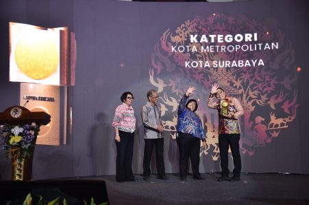 “Apalagi sekarang ada Surabaya Bergerak. Setelah Covid-19, kalau ada yang bilang Surabaya sekarang nggak bersih ya, buktinya tidak. Dengan Surabaya Bergerak, warga saling bergotong royong dan kerja bakti, sehingga penghargaan ini saya dedikasikan untuk warga Surabaya,” ungkap Cak Eri.