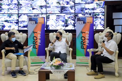 Surabaya, (DOC) – Wali Kota Surabaya Eri Cahyadi menjadi narasumber dalam talkshow bertajuk Pembelajaran Tatap Muka Secara Aman untuk Setiap Anak Di Kota Surabaya, Selasa (12/10/2021). Talkshow bersama UNICEF dan Radio RRI tersebut digelar secara virtual dari ruang kerja Wali Kota Surabaya.