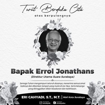 “Selamat jalan, Pak Errol. Surabaya kehilangan, Indonesia kehilangan. Semoga mendapat tempat terbaik di sisi Tuhan. Semoga keluarga yang ditinggalkan diberikan ketabahan. Amin,” kata Wali Kota Eri Cahyadi, Selasa (25/5/2021).