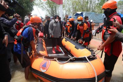 Gresik,(DOC) – Menteri Sosial (Mensos) RI, Tri Rismaharini meninjau lokasi banjir Desa Cermenlerek, Kecamatan Kedamean, Kabupaten Gresik, Jawa Timur, Minggu(7/11/2021). Tiba sekitar pukul 10.00, Mensos langsung menunju titik-titik banjir dan berinteraksi dengan masyarakat.