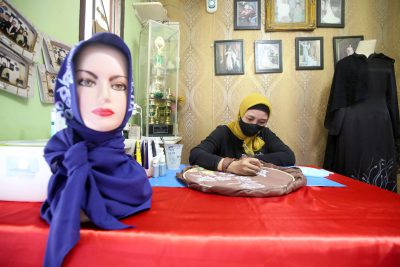 “Alhamdulillah, menjelang lebaran banjir pembeli, yang paling banyak terjual jilbab lukis instan dan masker. Hampir setiap hari kami melakukan pengiriman di dalam maupun luar kota,” kata Catur Andriani saat ditemui di rumahnya, Selasa (11/5/2021).