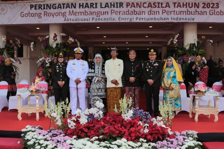 Surabaya, (DOC) – Pemerintah Kota (Pemkot) Surabaya menggelar peringatan Hari Lahir Pancasila di halaman Balai Kota, Kamis (1/6/2023). Dalam kesempatan ini, Wali Kota Surabaya Eri Cahyadi hadir di tengah para tamu undangan sebagai inspektur upacara pada peringatan Hari Lahir Pancasila di Kota Pahlawan.