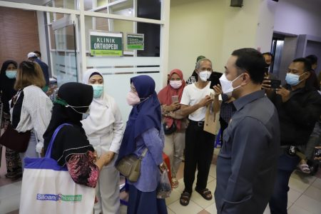 Surabaya,(DOC) – Wali Kota Surabaya Eri Cahyadi melakukan inspeksi mendadak (sidak) ke RSUD Dr. Soewandhie, Senin(28/11/2022) siang. Tiba di rumah sakit pemerintah itu, Wali Kota Eri langsung bertanya kepada dua ibu lanjut usia yang hendak pulang seusai mendapatkan perawatan di Poli Orthopedi.