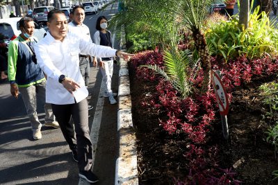 Surabaya,(DOC) – Wali Kota Surabaya Eri Cahyadi melakukan pengecekan penataan taman tengah kota, di sepanjang Jalan Raya Darmo Kota Surabaya, Kamis (25/8/2022). Pengecekan untuk menjaga keasrian dan keindahan taman tengah kota di Kota Pahlawan.